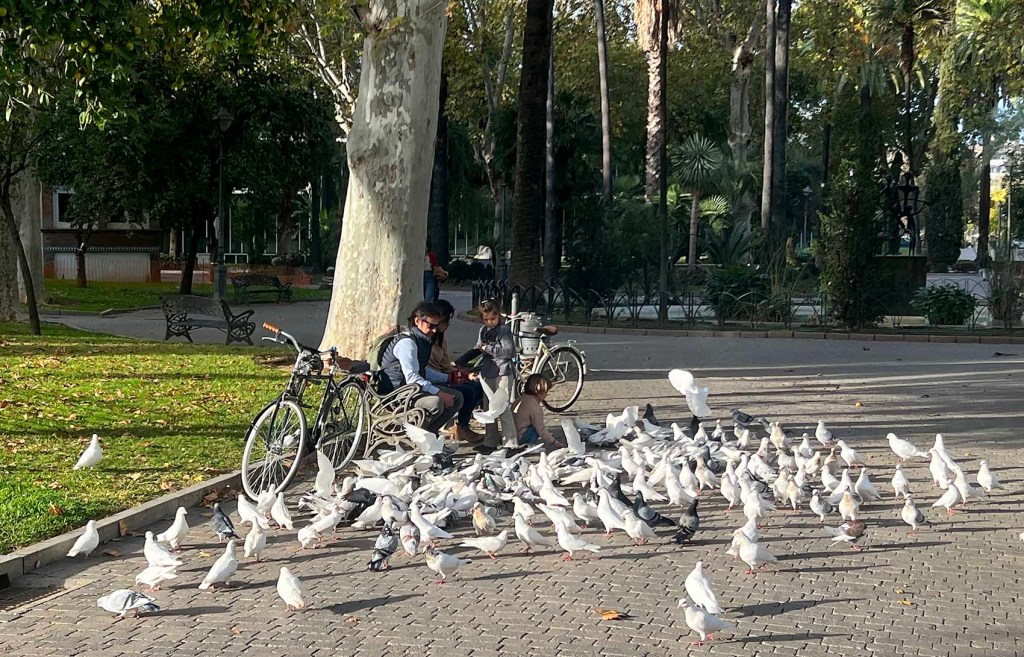 We’ve noticed there are 100s (maybe thousands, I’m not sure) of white pigeons in Córdoba. You can call them doves if it makes you feel better. Besides, they’re likely rock doves (what we regularly call pigeons).