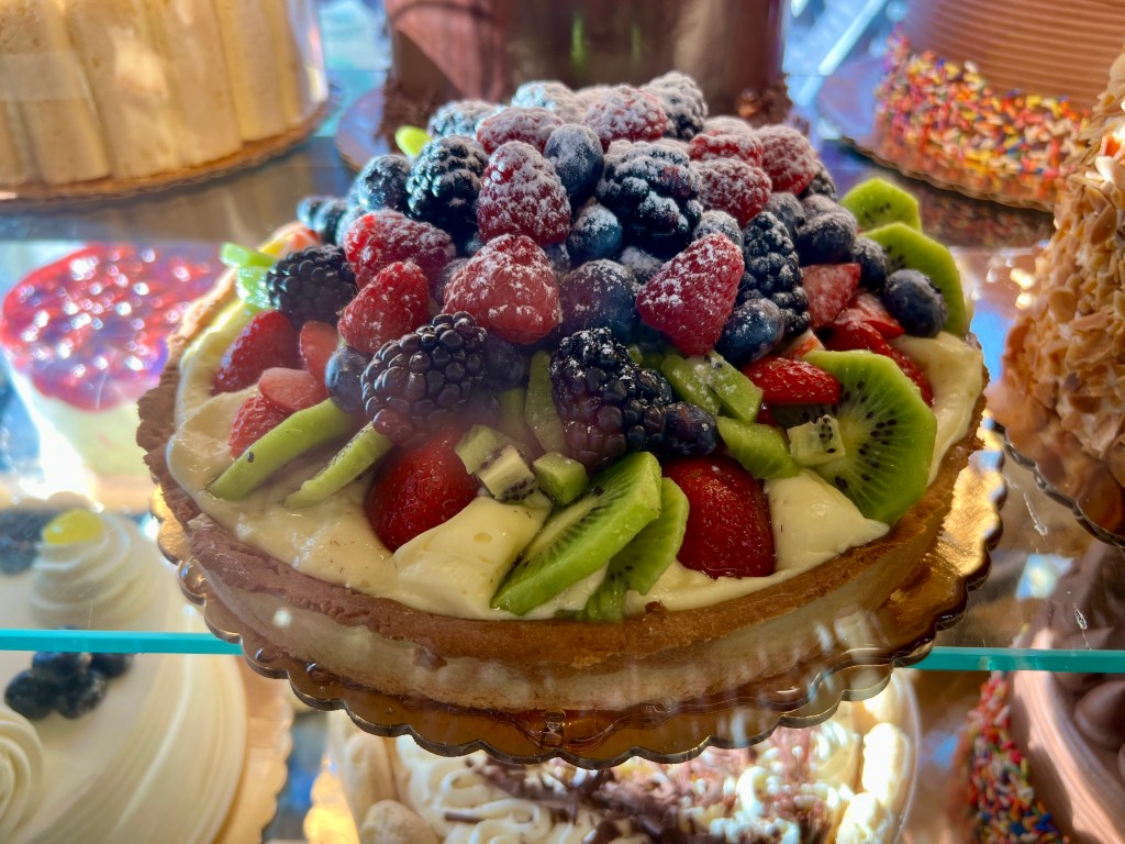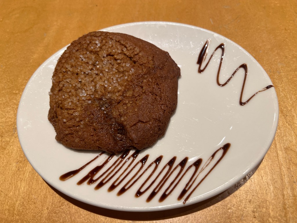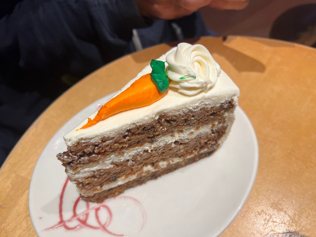 Today’s pics are of The Kid Brother and our desserts. The top photo is my canookie at Mia’s Bakery, two chocolate chip cookies with a cannoli cream filling. The cookies were more like cake and I didn’t enjoy it as much. KB had his usual carrot cake but he told me the next time I saw him that it was dry. When we returned Sunday, the canookie cookies still looked like cake, so I had a delicious molasses ginger cookie and KB had coconut cake. We were both happy.