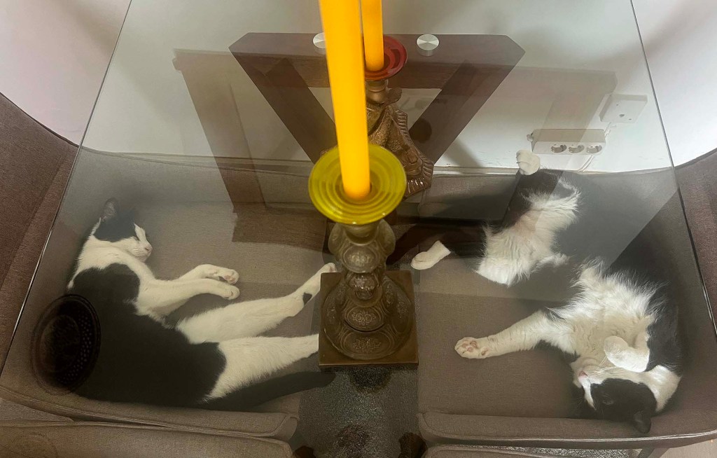 The weather has been glorious again. Now, at 5:30 p.m., it’s around 30˚C/86˚F, perfectly clear, and brilliantly sunny. I’m going to bed — but I know I’ll have to give the cats treat number 5 before I do. Sorry it’s not a more interesting post. I felt the need to update you on my health because I know I sometimes make you worry.