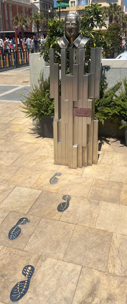 De todos modos, me alegró verlo rediseñado y dedicado de nuevo. Pero luego agregaron un busto de Pedro Cuevas y huellas de zapatos que salían de él (sin pista, sin explicación; tal vez el artista decidió huir). Es triste decirlo, pero la ciudad de Fuengirola necesita mucha ayuda con el arte público.