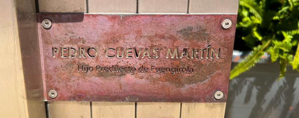 Fuengirola lo ha vuelto a hacer e instaló arte público barato y espantoso. Nuestra plaza cercana fue dedicada nuevamente hace unos años a un local muy respetado llamado Pedro Cuevas, quien fue concejal y vicealcalde de Los Boliches (nuestro barrio) durante muchos años. Eso fue un alivio ya que la plaza fue diseñada y construida originalmente por un estafador (actualmente en prisión) quien la llamó Plaza San Rafael en honor a sí mismo (la parte de Rafael; no era un santo y era conocido comúnmente como El Pirata). Era un diseño pobre con una columna muy alta coronada por una estatua de San Rafael que se parecía inquietantemente a Rafael el estafador. Haz clic aquí para ver mi post original sobre el estafador.