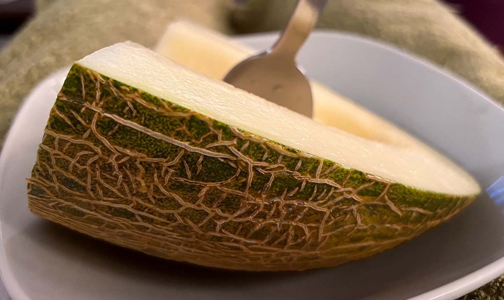 • El melón piel de sapo es originario de España. En inglés, se le conoce como melón de Santa Claus o melón de Navidad porque se conserva hasta Navidad. Es similar al melón dulce, pero aún más dulce, e incluso puede tener un sabor a pera. Mi melón favorito.