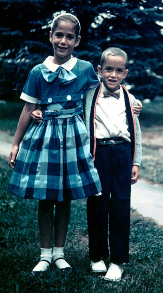 We were on our way to dinner while spending some time at the Commodore Hotel in Swan Lake, New York. My mother was pregnant with The Kid Brother, and I think my parents chose the place because it had a day camp and Dale and I would be out of their hair for a few hours every day. There were swim lessons. And tennis lessons. And baseball. Every game was a team game. I hated it all and was not cooperative. But Dale and I did have mad drip as you can see.
