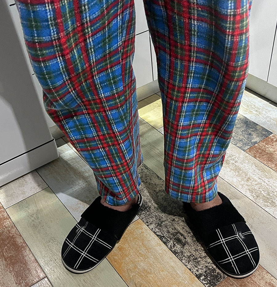 • SG luciendo su tartán de Ralph Lauren y sus zapatillas baratas con cristales.
