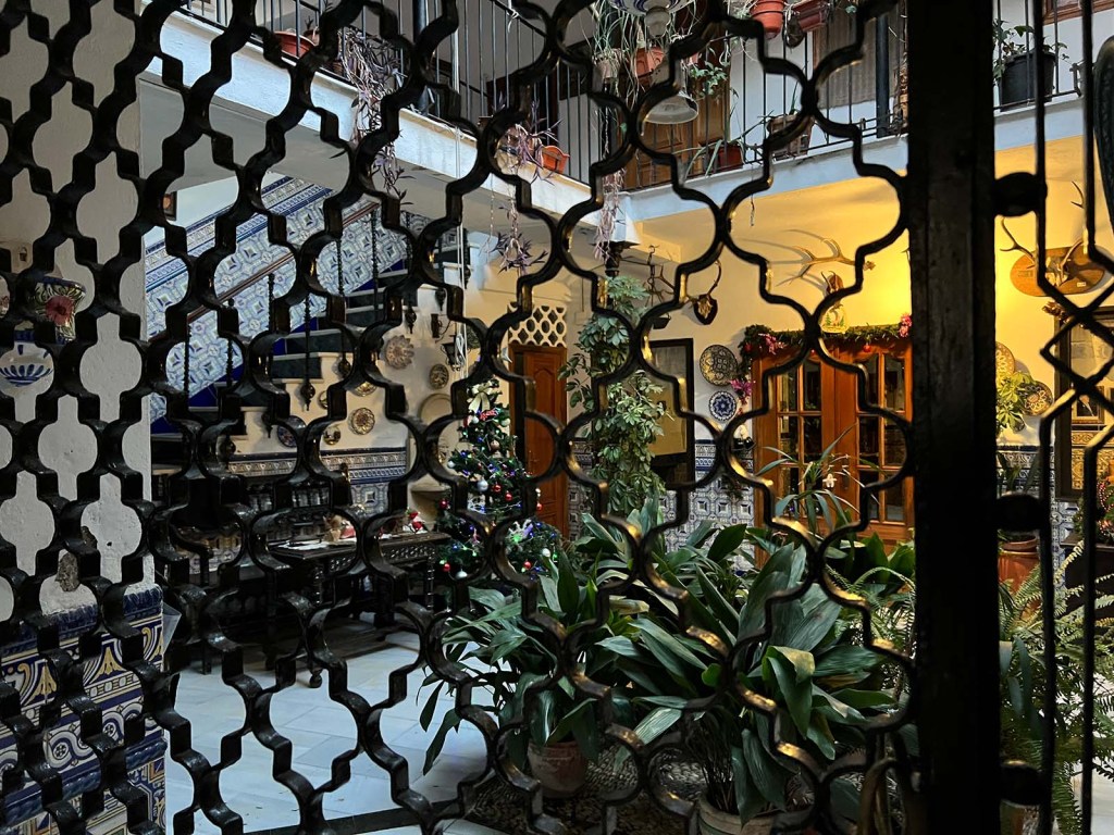 Después, eché un vistazo al interior de la puerta de una casa con un hermoso y típico patio central. Cuando vivíamos en Sevilla, me dijeron que si las puertas que dan a la privacidad están abiertas, se puede mirar dentro. Puede que haya exagerado al echar un vistazo por la ventana de la casa con las escaleras de azulejo.