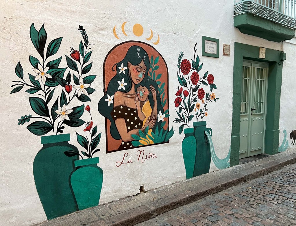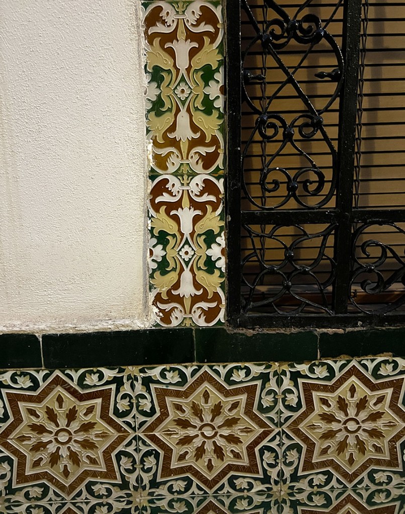 I’m thinking of doing a photo collection of the ceramic tile I see on building exteriors. Not far from the window I peeped through and the tile I photographed was a mural dedicated to “La Niña.” I don’t know who la niña is but the mural adorns the home of the tavern Peña Flamenca Merengue, a multi-generational family (the Merengues) who dance and teach flamenco and offer traditional Cordoban meals.