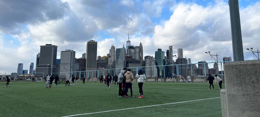 Mi primera vez en Brooklyn Bridge Park fue en 2015, durante la larga hospitalización de mi madre y su cirugía de espalda (cuando me dio permiso para alejarme un solo día de su lado). En aquel entonces, entré por el otro extremo del parque, bajo los puentes de Manhattan y Brooklyn. (Haz clic aquí para ver esas vistas). He ido al parque varias veces desde entonces, pero aún hay mucho por descubrir. No te pierdas la oportunidad de ver el mapa en las miniaturas.