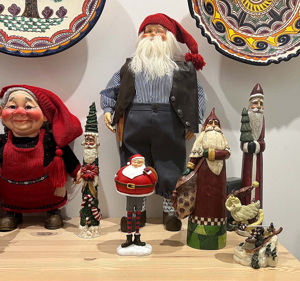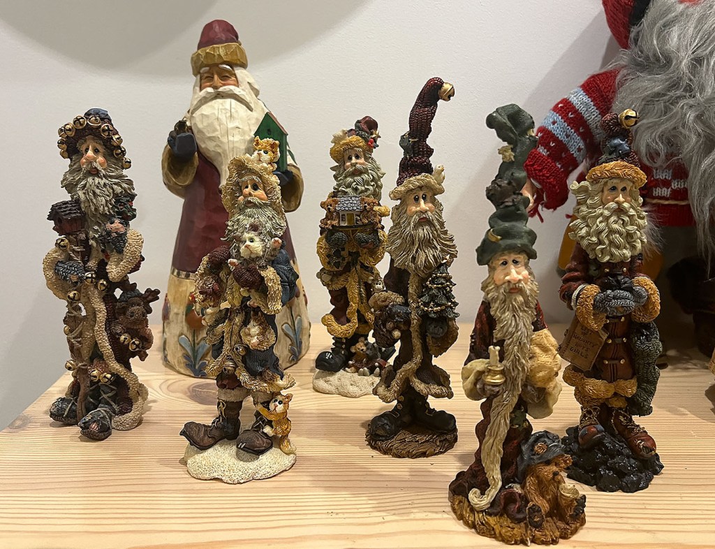 • Más Papá Noeles de Ryan y Matt, además de un muñeco cabezón de Papá Noel/Jule Nisse que compramos en Bergen. El muñeco grande de la parte de atrás nos lo regalaron la prima de SG, Inger, y su marido, Jan Olaf. Al frente y a su derecha hay uno junto a Heartwood Creek que compramos en California.