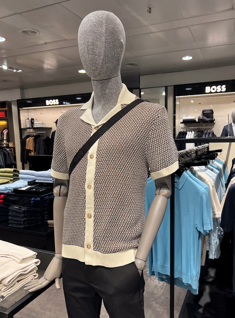 Yesterday, I walked a bit and bought myself a shirt at El Corte Inglés. It’s black on black with embroidery and open stitching. The photo doesn’t show how black it is, although it does show the wrinkles. It will look great with a contrasting T-shirt underneath. There was a Hugo Boss shirt I liked. It was on a mannequin but I couldn’t find it anywhere else. I asked a sales clerk. “Oh, we don’t have any,” she smilingly said. I refrained from telling her she should remove the one from the fricking display then.