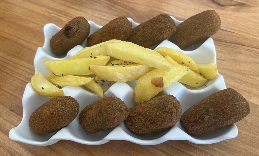 • Croquetas rellenas de espinacas y piñones de Casa Colón. Magníficas.