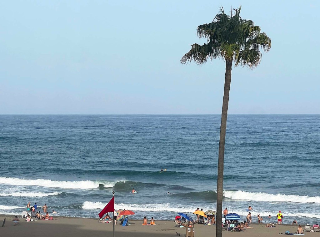 Hace unos días tuvimos olas y vientos fuertes (que soplaron mucho aire caliente). Había banderas rojas ondeando en la playa y eso significa que no se puede nadar. Pero los salvavidas están de servicio y permiten que la gente nade en áreas designadas que no tienen corrientes de resaca peligrosas. Los salvavidas están de pie, vigilan y se aseguran de que los nadadores permanezcan en las áreas asignadas. Más allá de eso, los surfistas tienen su propio conjunto de reglas. Algunos de los mejores días para surfear son los días de bandera roja.