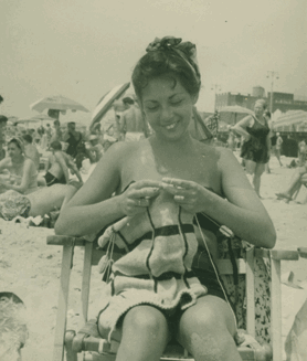 El estilo español puede ser muy ajustado, así que ahora le estoy sacando más partido. A continuación, puedes verme antes del almuerzo con el suéter puesto y luego a mi madre tejiéndolo en la playa de Coney Island en 1949. Cuando me quité la chaqueta en Casa Colón, Berna (una de las camareras/bartenders) inmediatamente comentó lo genial y hermoso que era mi suéter. Me hizo sentir genial. A veces la calidad realmente dura. Por cierto, ¡se supone que la temperatura baja a 2˚C o 3˚C (entre 35F y 37F) durante la noche! Sí, San Geraldo lleva su ropa interior larga.