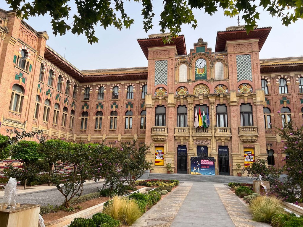 The school was established in 1848 as a separate entity from the veterinary schools of Sevilla and Madrid in an old deteriorating building. In the 18th century it was a convent. In the 19th century, it was a hospice and then barracks for the Civil Guard. I do need to go inside. It’s one of my favorite buildings here. The current school is now located on Campus Rabanales east of the city.