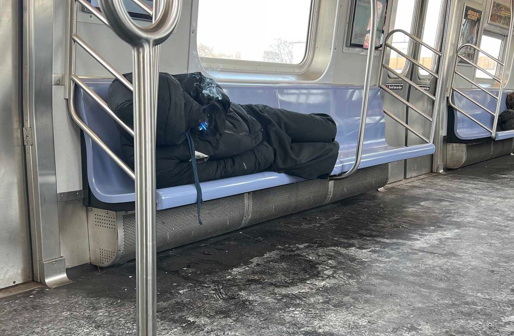 Siempre había mucha gente que viajaba para resguardarse del frío. Mi viaje a Coney Island fue “interesante”. El vagón iba sorprendentemente vacío cuando pasó y, una vez que subí, entendí por qué. Unos cuantos tipos habían montado un campamento o estaban repartidos por los bancos. Mientras iba, el tipo que iba frente a mí empezó a fumar cigarrillos electrónicos (no, no está permitido). Decidí esperar a la siguiente parada y cambiar de vagón. Un momento después, el tipo que estaba al otro lado del vagón encendió un cigarrillo. Resulta que estábamos en un tramo largo entre paradas (las reparaciones de la vía nos hicieron saltar cuatro paradas). Yo y otros dos pasajeros nos tapamos la cara y aguantamos la respiración hasta la siguiente parada. Todos nos subimos al siguiente vagón. Los que estaban a punto de subir se asomaron, tomaron aire y nos siguieron.