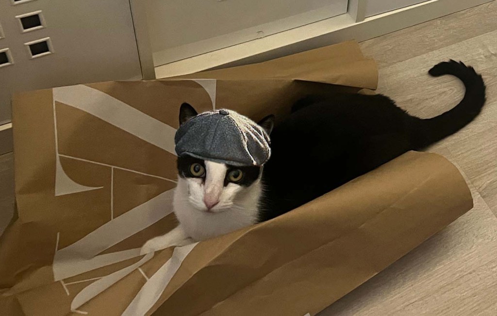 Around 1983, San Geraldo bought an exceptional quality nylon trench coat by Japanese designer Yumiko Tamura. We were at a Bloomingdale’s (department store) outside Washington D.C. We both loved it; I wanted it, too, but he saw it first. Besides, it was retail. We still have the trench coat 41 years later and, except for needing to be pressed, it still looks like new. When he wore it this past season, he commented that he needed a stylish hat or cap to go with it. I began to describe a flat cap and he said, “That’s it. Like the ones from Stinky Binders.”
